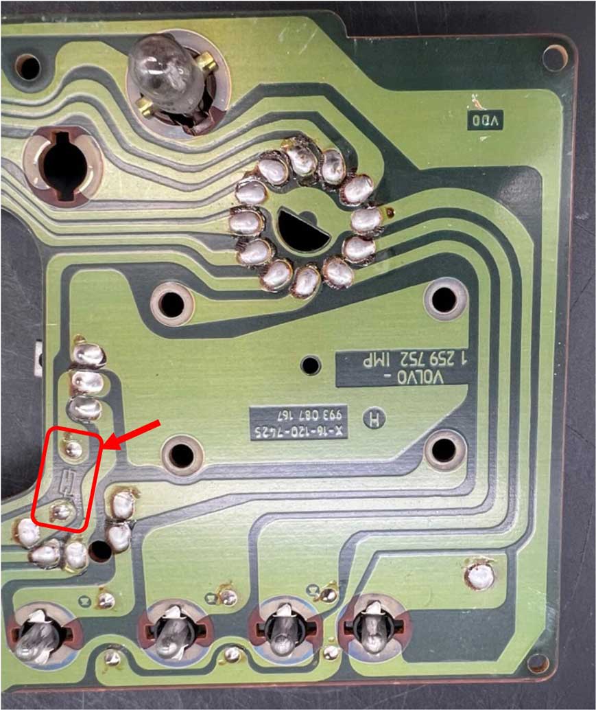 cooling system. To make customers feel better, beginning with the 1986 year model, Volvo began installing a special circuit board in the instrument cluster that changed the function of the coolant temperature gauge so that it would remain stable in the middle or appear more "normal" at all times unless the engine was ACTUALLY very cold or very hot. The gauge needle then had only a few programmed readings instead of a true variable reading. Then it appears that customers were happier with a gauge that didn't reveal the true temperature. These temperature compensation boards generally worked fine until they got old and began failing. A failing board would cause mysterious high or low fluctuations for no reason. If you're trying to determine what your high or low temperature fluctuations REALLY mean, you can get an infrared (IR) temperature reader and check your top radiator hose temps or your thermostat housing for abnormal changes. If you find that actual temperatures are pretty stable, then your temperature compensation board may be the problem. Below image from TP30778/1 New Car Features 1986 240 ![]() This somehow would not offer ME much comfort after reading THIS. North American Market versus European Market in 2024 I was sent some images below showing a 1988 240 gauge cluster board from a European 240. The Euro 240 board was obviously never made to accept a temperature compensation board. I don't know for certain if this is typical of non-U.S. 240s, but it certainly appears possible. ![]() BYPASS STEPS This image below has circulated the net for a while. It shows some simple steps needed to remove and bypass a Temp Board. ![]()