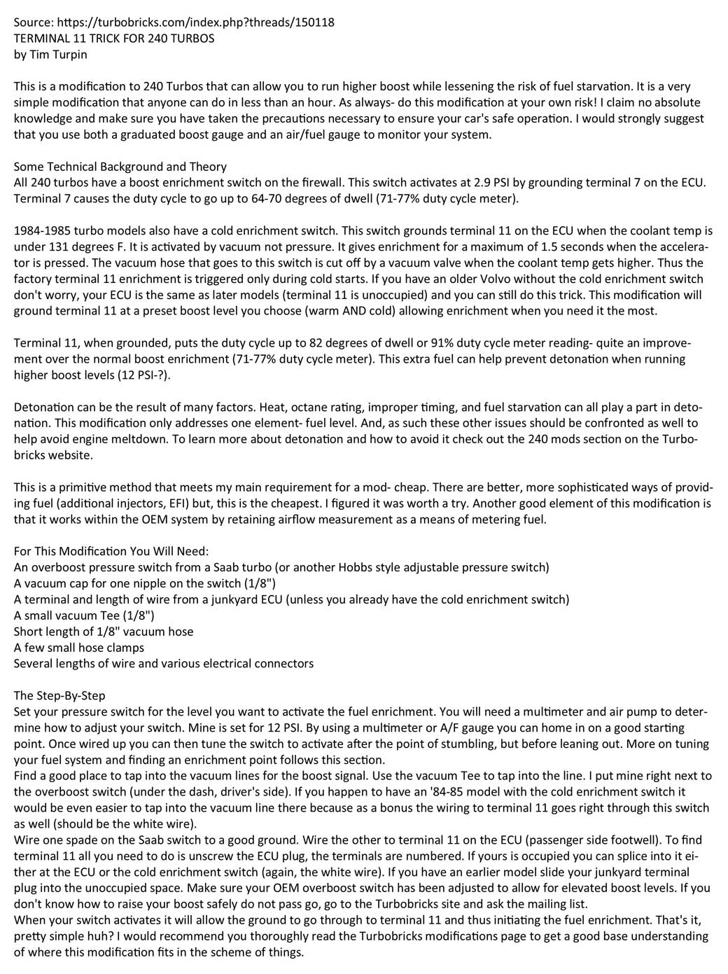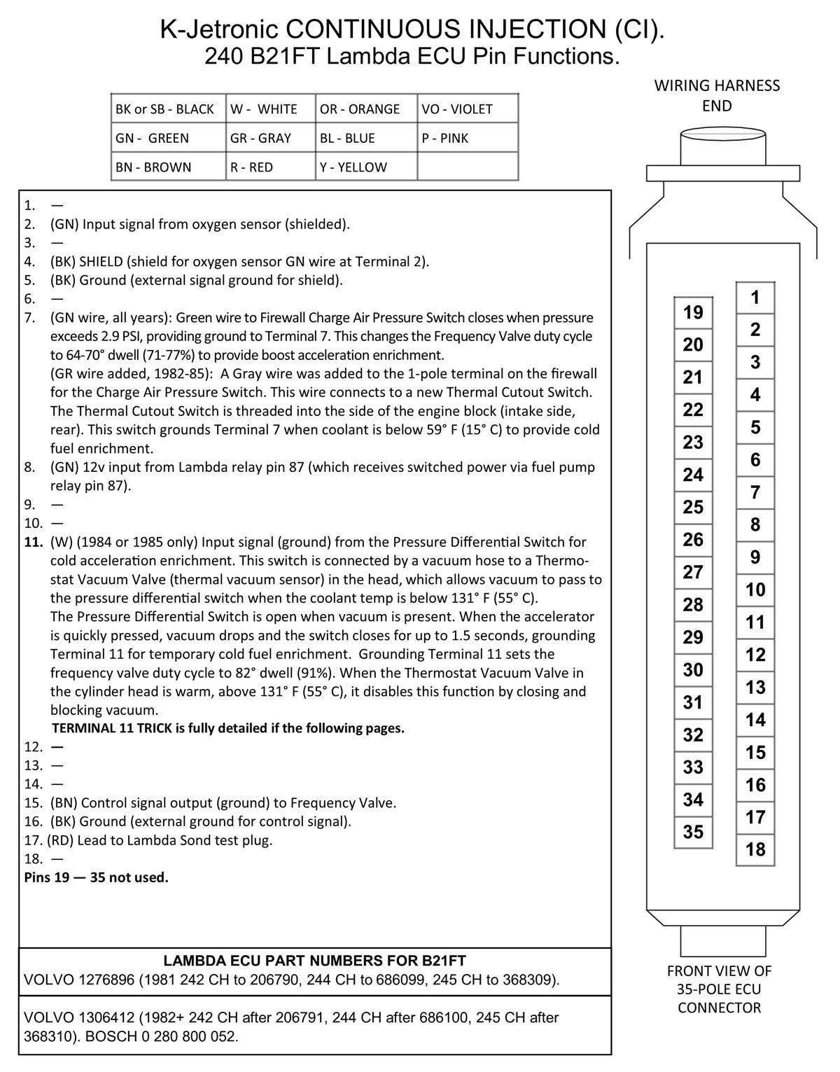 | Pin Function Diagrams 1981-85 240 TURBO B21FT with Bosch Breakerless Ignition |