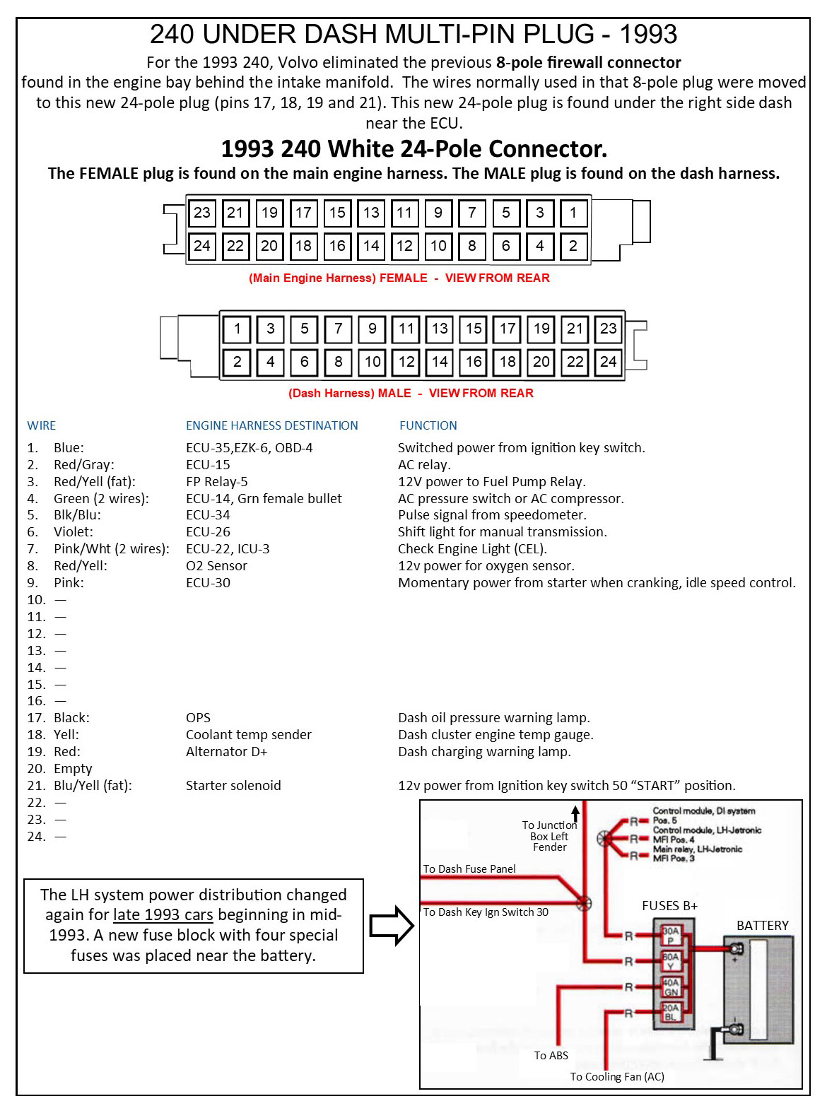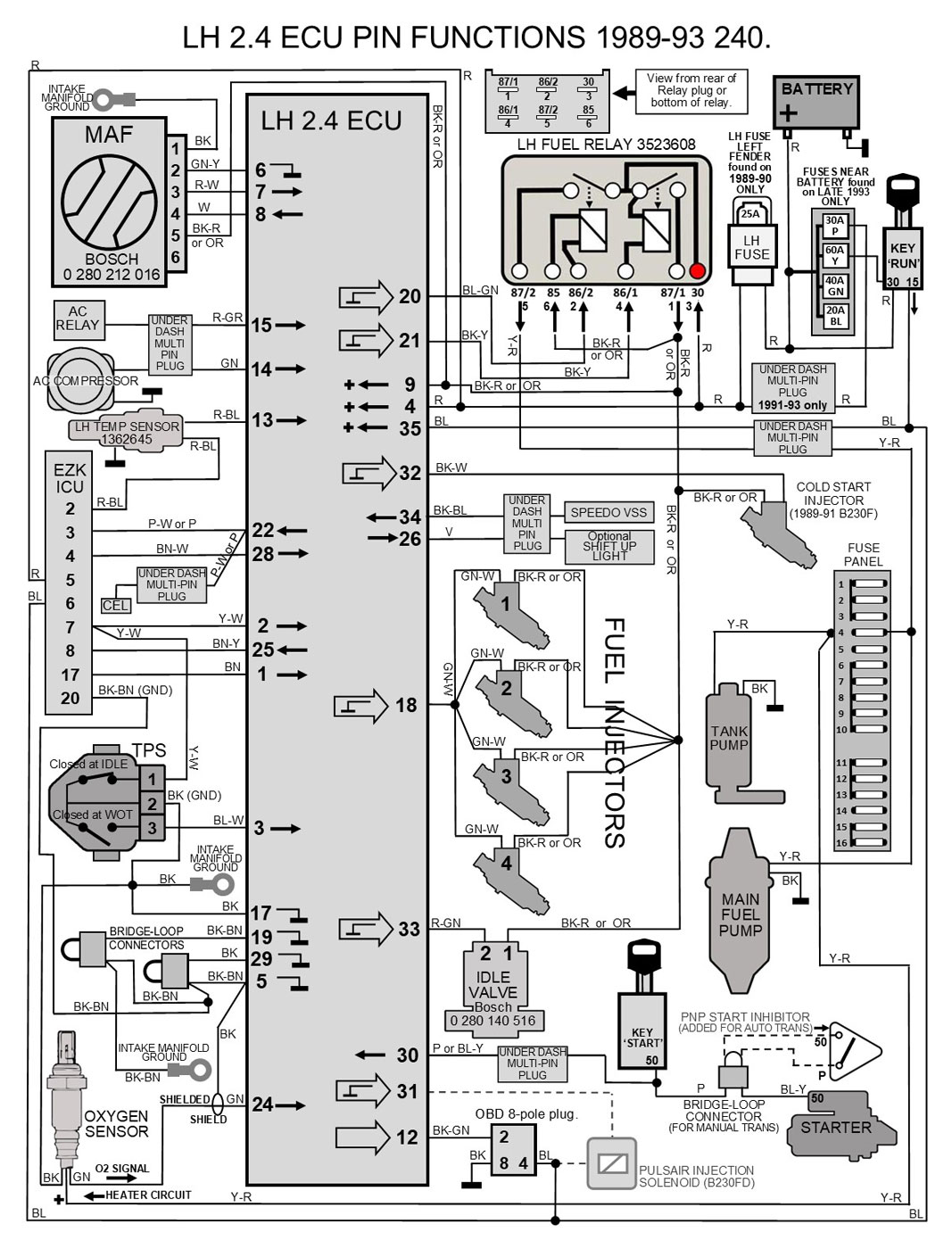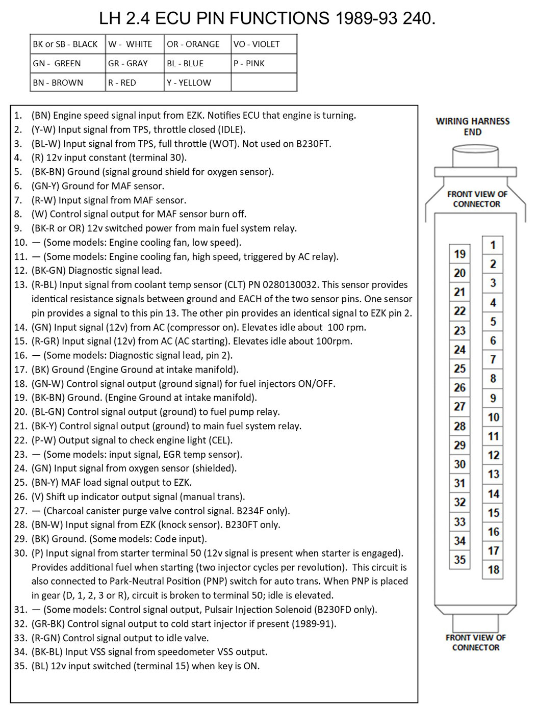 | Pin Function Diagrams 1989-93 240 B230F LH 2.4 with EZK Ignition |