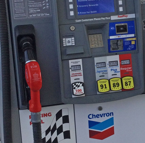 ![]() Chevron (formerly Red Dot Fuel, Valero Gas, Sherman Mini Market) 16103 Sherman Way, Van Nuys, CA (corner of Woodley) 818-780-2938 Open 24/7 101 octane unleaded at the pump 06/22/15 $8.99 No credit card reader, so it needs to be prepaid at the counter. There are new signs on top of the pump, "Racing Fuel Sold Here," as well on top of the canopy from both sides of the street. Fuel is from Trick Racing http://www.trickgas.com/unleaded.htm. They call it "100" on the pump (R+M)/2, but the page actually calls it out as “97+.” |