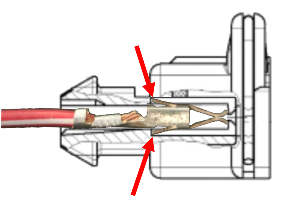 ![]() Be sure to pull on the wire to TEST it after crimping. It should not pull free. |