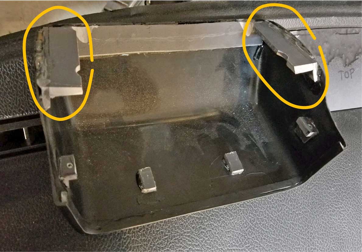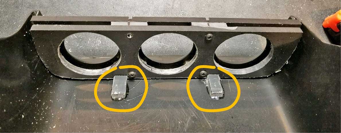 ![]() ![]() Then the bottom speaker grill piece was mounted onto those angle braces using four counter-sunk screws. ![]() I cut a notch using my bench grinder into the bottom piece to allow room for gauge wires and a vacuum hose for the boost gauge. ![]() LATER, I changed my mind about using these WING NUTS on the bottom after I found they tended to vibrate loose too easily when driving. The final solution after I got rid of the wing nuts was some simple NYLON LOCK NUTS, which would never vibrate loose. ![]() |