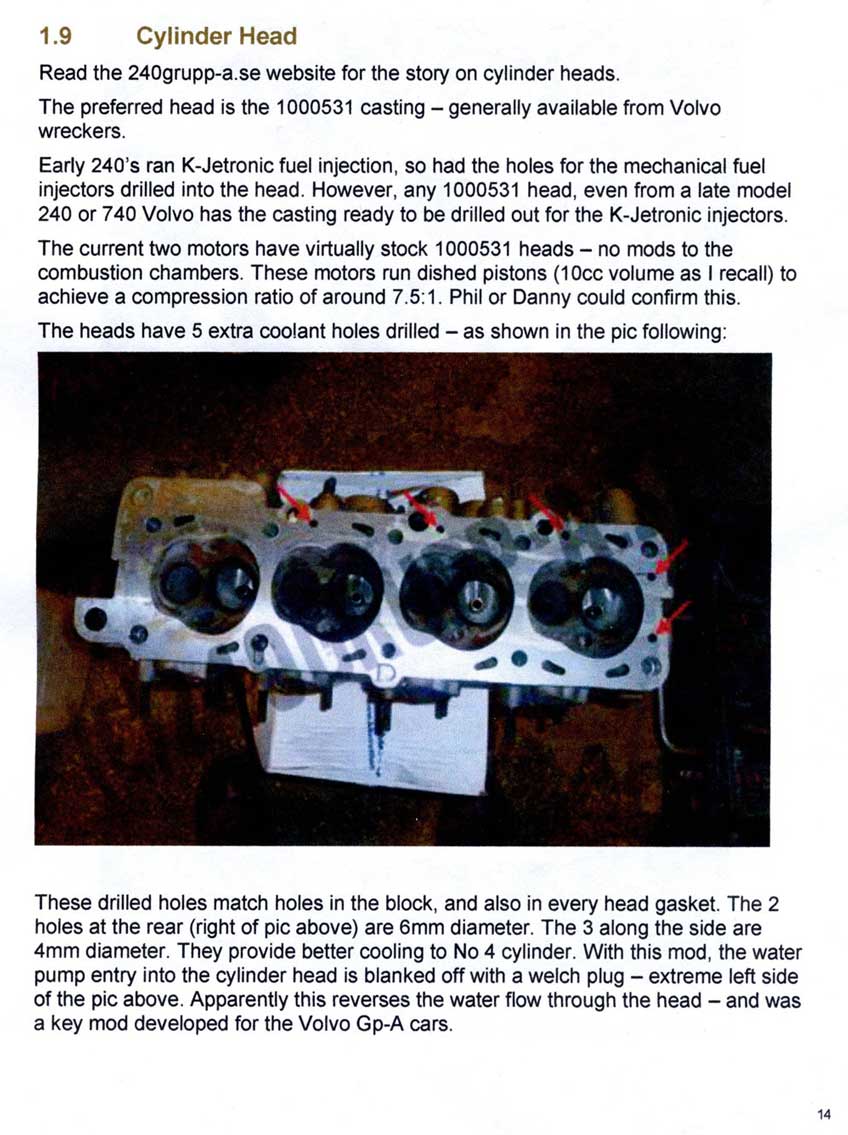 https://turbobricks.com/index.php?threads/8v-b230-cooling-system-modification.121189/ https://ozvolvo.org/d/9617-530-531-head-porting-and-polishing/19 https://www.stonis-world.com/headwork.html https://turbobricks.com/index.php?threads/are-people-still-doing-the-grpa-cooling-mod.382897/ This image below has been around for a long time. It's from Bilsport Magazine Nr 10, 2001, page 27 (in Swedish). It very lightly discusses adding the Group A 240T cooling holes. An English interpretation is below.