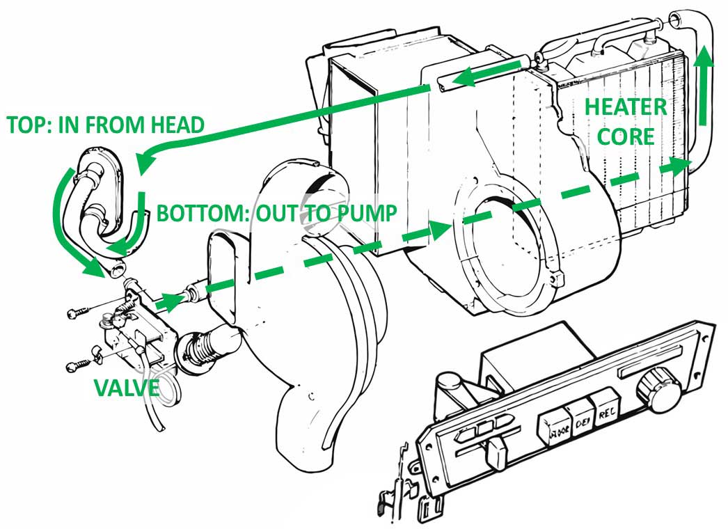 | Adding a COOLANT BYPASS VALVE This will discuss adding a 4-port coolant bypass valve to the heater hose circuit. I have a 240, so please forgive me if most of my info tilts toward that model, however, there is also plenty of info here for 700-900 models. Reasoning for adding such a valve can be found below where the Coolant Map is explained, in addition to the TB discussion below. This first valve shown below has a VACUUM DIAPHRAGM to cycle it ON or OFF. If vacuum is present the valve will close. This type of valve is discussed in the following Turbobricks discussion. https://turbobricks.com/index.php?threads/7-9-updated-heater-control-valve.246617/. ![]() The above vacuum type valve was shown in the linked Turbobricks discussion because it was adapted to worked in a vacuum actuated 700 system. This type of valve may or may not be appropriate for a 240. You'll have to make that decision if you feel that a vacuum controlled valve is right for your car. PART QUALITY NOTE: Having a quality, leak free valve is super important. A leaky one will not be worth the trouble if it saved you a few dollars. The above TB discussion found some cheap valves that people discovered would begin leaking eventually. Other bypass valve types. You can also find manual Cable actuated valves or electric valves. The electric valve below is from CJ Pony Parts. This one can be opened or closed (or partially opened) using a variable knob. ![]() This one is available at https://www.cjponyparts.com/heater-bypass-valve-kit-servo-controlled-bronco/p/BHV4/ Restomod Air has a similar 4-port valve: https://restomodair.com/shopproducts/4-way-electronic-bypass-water-valve-kit/ Typical 4-port bypass valve diagram. ![]() To Bypass or Not to Bypass. The below coolant maps should help with our understanding of coolant flow. In the below map, Location #1 shows the first entry of coolant from the radiator into the water pump. Location #5 shows coolant exiting the cylinder head and going to the firewall. In a 240 the coolant flowing through the firewall will be interrupted by a heater valve, which is controlled by a cable. When this factory valve it set to COLD, the heater valve will always be closed. This closed position means no hot coolant will circulate out of the back of the cylinder head, through the heater core and then back to the water pump. The general thought is that by allowing this coolant circulation to bypass the heater valve and core, we can potentially improve cooling, particularly in the rear cylinder head region where the cylinder head can be known for being hotter. TB discussions have reported real world improvements using a bypass valve (more relevant links below). ![]() ![]() Relevant Links: https://turbobricks.com/index.php?threads/7-9-updated-heater-control-valve.246617/ https://turbobricks.com/index.php?threads/8v-b230-cooling-system-modification.121189/ Relevant General Cooling System Information Cooling System Basics: https://www.c1pulleys.com/pages/cooling-system-basics The Cooling Bible: http://www.billavista.com/tech/Articles/Cooling_Bible/index.html GROUP A Cylinder Head Cooling Holes This cylinder head modification has been around for a long time, but it has not been widely known or widely understood (outside of Sweden at least). Most explanations (including the below video) discuss using a head gasket to determine the locations of the FIVE new cooling holes to be added (with three holes added along the EXHAUST SIDE). ![]() The hole sizes shown above may not be what everyone expects. I took them from the BELOW VIDEO. One of the mysterious questions that came up in my mind after studying this is as follows: This concerns the three holes along the long edge. Some of the old 240 Turbo Group A references and images clearly show these three holes are drilled on the INTAKE side, not the EXHAUST side as seen above, however virtually all other images, including more recent ones (like ABOVE), show these holes drilled on the EXHAUST side. Putting holes along the INTAKE side will be more difficult, because it does not appear any head gaskets have those holes on that side to use for a pattern. For example, this one BELOW is posted in https://240grupp-a.se/kylning/ with holes drilled on the INTAKE side. ![]() If I was to offer an uneducated opinion, I would choose to make these holes on the hotter EXHAUST side. I welcome your comments. This short VIDEO below offers a welcomed explanation of how these holes are added. Group A 240T Head Cooling Mod. https://www.youtube.com/shorts/qqn_xvRclG0