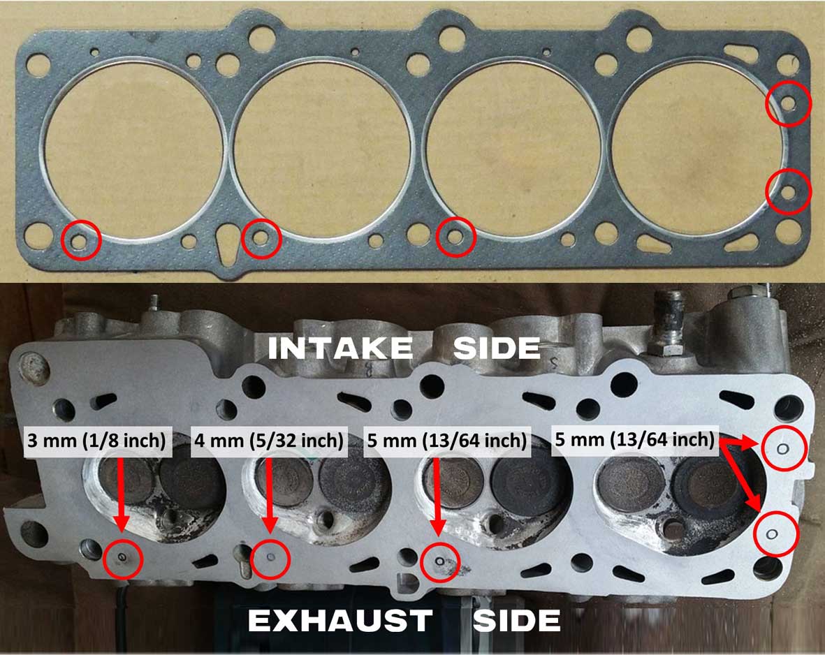 This is Page 14 from the Volvo 240T Group-A Owner's Manual, by Richard Prince. ![]() Note that this image also has the three long edge holes drilled on the INTAKE side. This cylinder head image above came from https://240grupp-a.se/kylning/. The above page also mentions that Group A heads were further modified by blocking off the water pump port by inserting a "welch" plug (same as a freeze plug). ![]() The complete 32 page PDF MANUAL can be found at https://1drv.ms/b/s%21AtjXfjFx5NHNjakt9r9kaL2_GeVI9Q ![]() BCP versus SCP heads Here you can see the difference between a BIG COOLANT PASSAGE (BCP) head and the more desirable SMALL COOLANT PASSAGE (SCP) head. ![]() Why is the Small Coolant Passage head considered better? It's considered to be a stronger design, sealing better at the head gasket when under high stress or high boost, and potentially less prone to cracking. When did this change occur? One Turbobricks member wrote: "I have a 398 head BCP dated 3/3/84... and a 398 head SCP dated 4/12/84." I also have a 398 SCP head I pulled from a Pick-A-Part that is dated 4/4/84. Apparently this change occurred between March 3 and April 4, 1984. Where can you find the date code? It's molded into the aluminum on the exhaust port side very close to the back of the head. The numbers are vertical (Day - Month - Year), i.e.: for a 12 April 1984 head the numbers appear as 12 on top then 4 then 84 on bottom. This example below is a 160 head with a date of 23/4/83 (23 April 1983). ![]() |