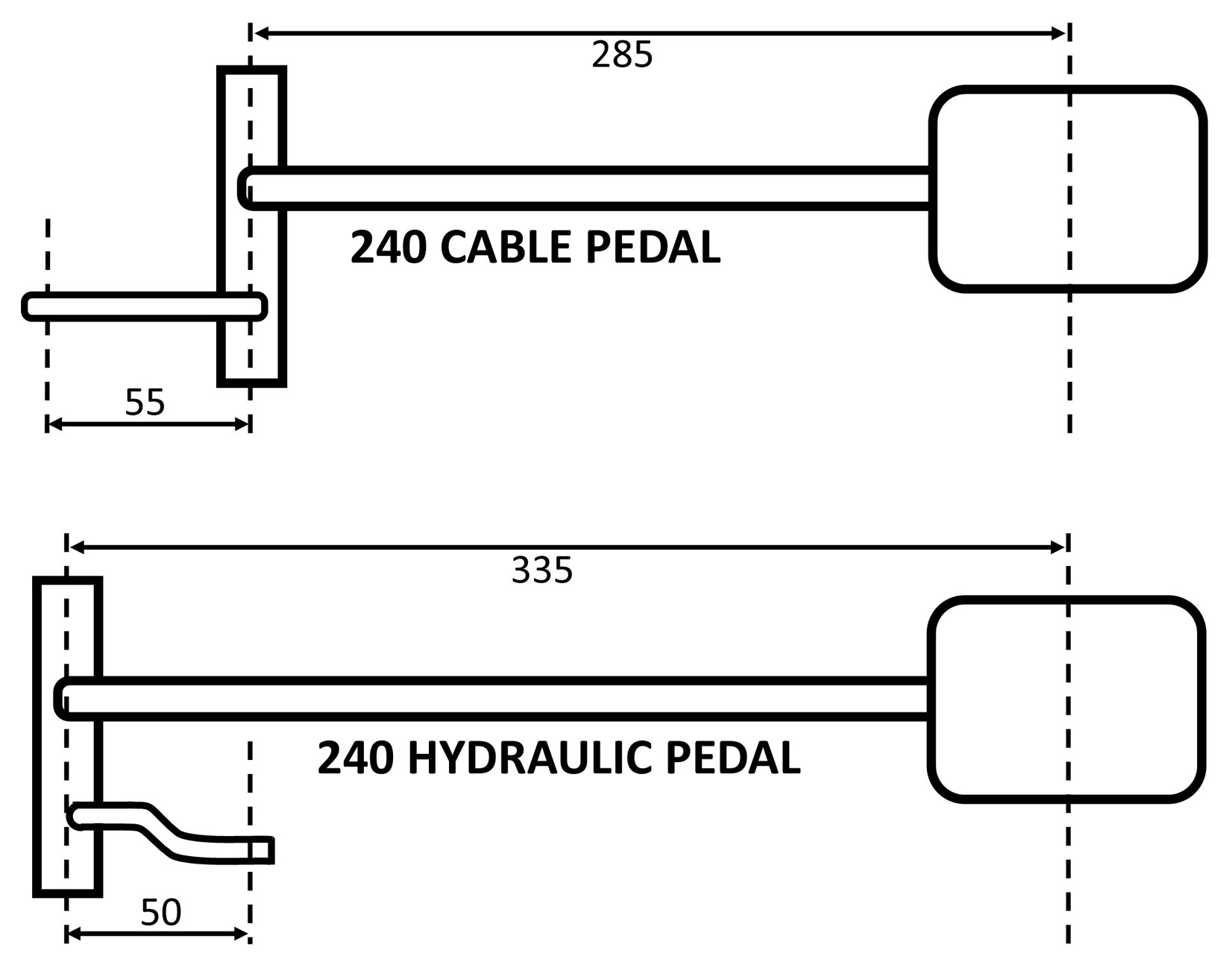 A hydraulic clutch pedal is about 50 mm longer than the cable style pedal (between the pedal and pivot) because it mounts into a different set of holes in the pedal box that are higher in the box. The holes for a hydraulic pedal should already exist in the pedal box. ![]() Ignore the bend above. That was done before I got it and it's not like that originally. ![]() And here's the CABLE style pedal for comparison. ![]() Pedal ratio differences between Cable type and Hydraulic type. Source for dimensions: https://turbobricks.com/index.php?threads/366388 ![]() |