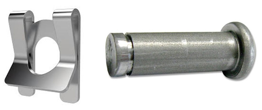 pin is screwed onto a stud bolt, which is screwed into a nut inserted