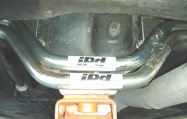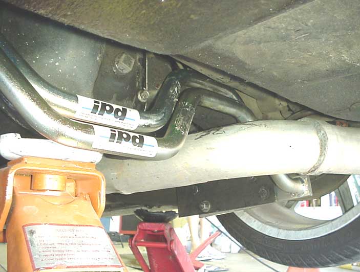 Big Front Sway -- Dual Rears: from ipd (rare) 28 mm front sway bar along with trick end links from MVP. The big front sway bar was developed by IPD for the 260 and has been used for 240 V8 conversions. It is no longer available. I