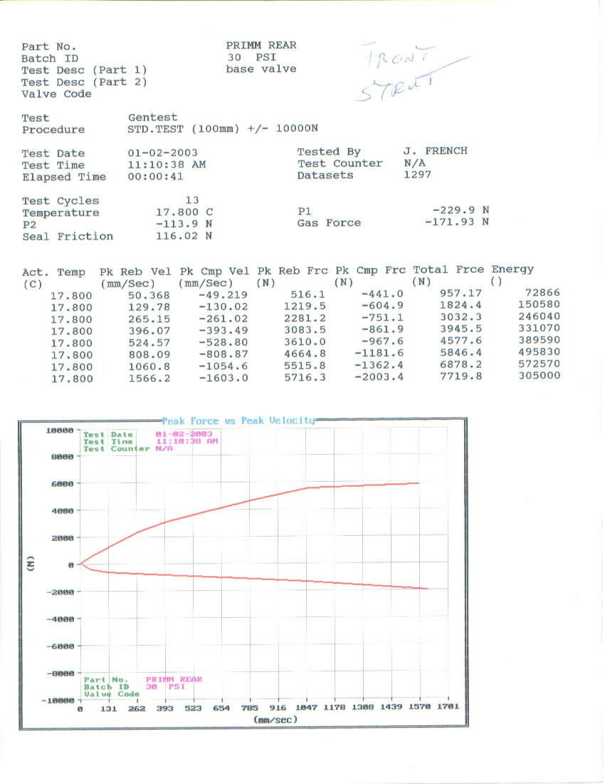 For comparison, measurements are in NEWTONS and at a peak velocity of 500 mm/second (19.7 in./second) on Bilstein's computerized dynamometer. | |||