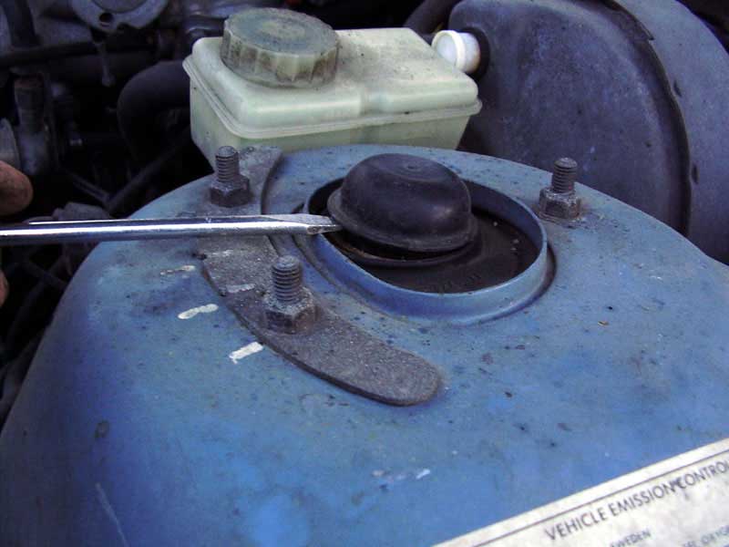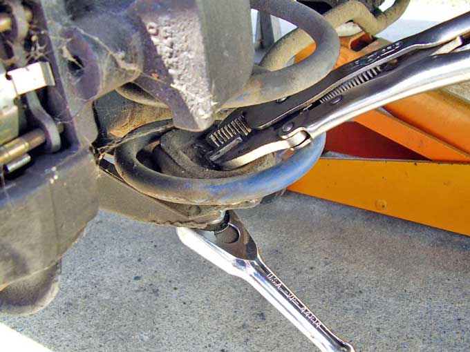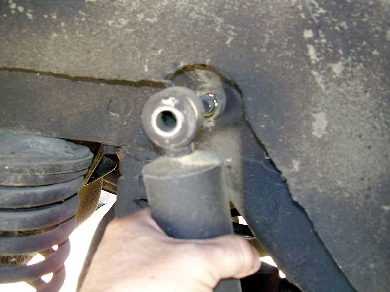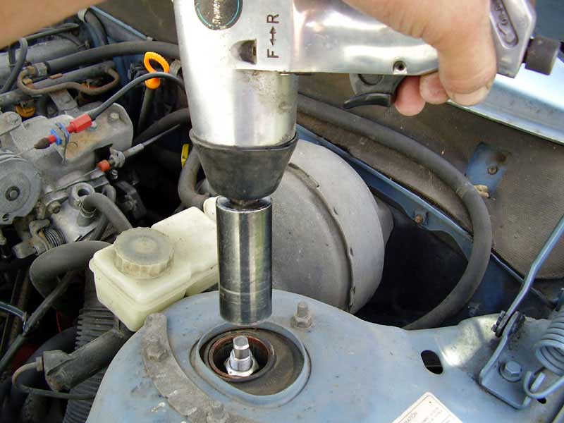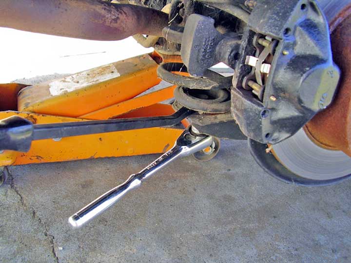 I use my foot to push up on the bottom of the strut assembly and get the strut