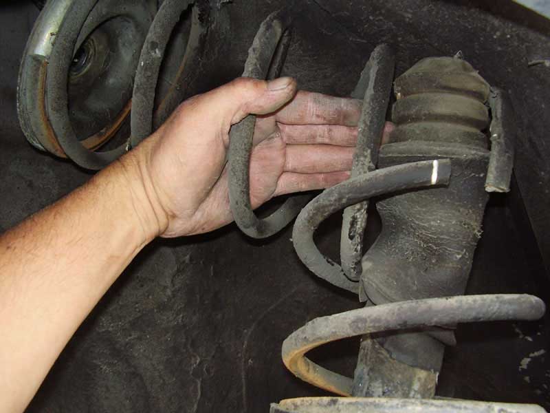 no pressure still on the spring. Tap it with a big rubber mallet.