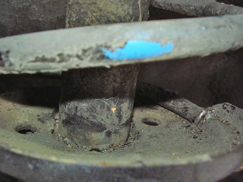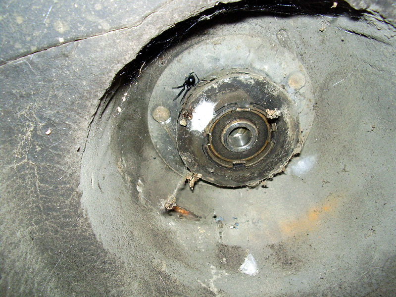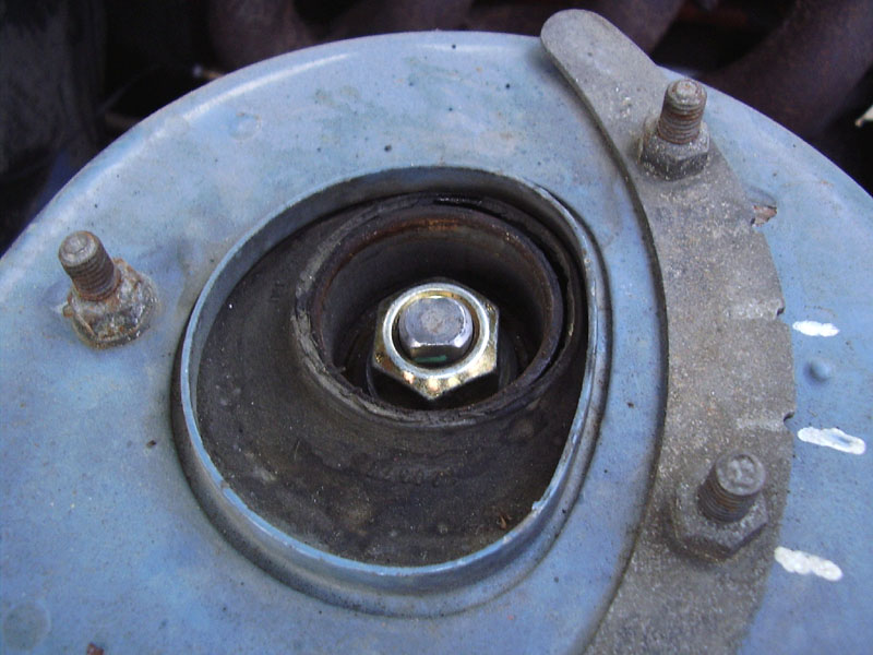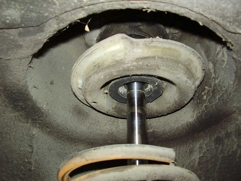 Now put the top spring perch back on the strut shaft and try to line up the shaft with it's hole.
