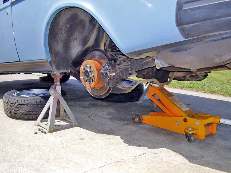 by the rear axle and place jack stands at the factory rear jack mounts.