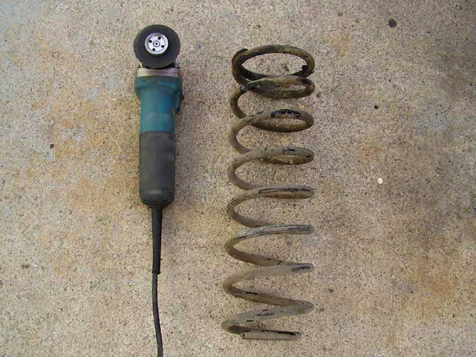 Get out your grinder with cut-off wheel or whatever you plan to use to cut the spring.