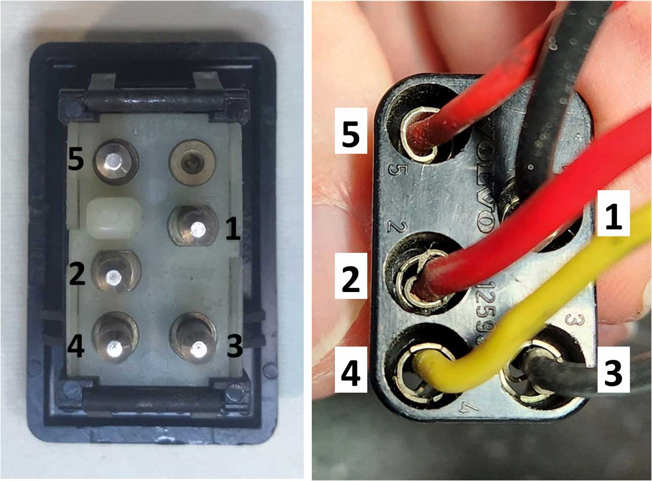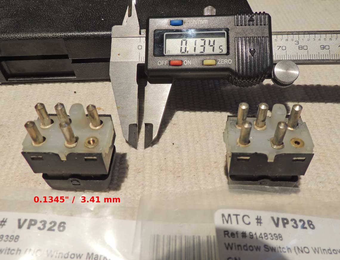 ![]() ![]() WARNINGS about some DEFECTIVE aftermarket window switches. In March 2026 I received an email from a 940 owner about a problem with MTC aftermarket window switches which were made with UNDERSIZED electrical pins. This problem was specific to 940 switches with the MTC brand, MTC PN VP326 (for Volvo PN 9148398). When he contacted MTC in California, he discovered the same problem existed for MTC VP325, which fits 1985-93 240. So far it's not know if this error affects other aftermarket switches. So you should check any aftermarket window switch you have before installing. Email me if you have any comments: CONTACT The correct size for a factory MALE PIN on a 240, 740, 940 window switch should be 3.59 to 3.60 mm in diameter (or about 0.1415 inch). ![]() The MTC VP326 (940) switch below was measured showing an incorrect pin diameter of 0.1345 inch (3.41 mm). These pins are undersized 0.07 inch (about 1.8 mm). These undersized pins can created a loose circuit connection problem for the harness connector. ![]() Making a Terminal Removal Tool for Volvo Window Switch Harness Connectors. Some time back I was working on a 240 door harness and I found the round bullet female terminals in the power window switch plugs were not easy to extract without damaging them. After some experimentation, I found a great solution. Here's a typical 240 power window switch. ![]() Releasing a terminal like this from a housing requires these barbs to be depressed, both at the same time. ![]() If new terminals are needed, they're available HERE. I found that THIN wall tubing in brass or stainless can work very well for this. The tubing needs to have an outer diameter of 4.5 mm, an inner diameter of 4.0 mm, and a wall thickness of 0.25 mm. This image below shows it's available at McMaster Carr, PN 8950K38 for 1/2 meter length. It's also available other places. ![]() The tubing is inserted around the terminal as shown below. It needs to go in about 4 or 5 mm (about 3/16 inch) to depress the barbs. If it's done right, the terminal and wire can be pulled out the back. ![]() ![]() |
